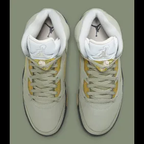 As you can see in the official images, the shoe is covered in a light green upper, all while aged yellow is placed throughout the side and even the midsole. Overall, it is a pretty great look, and fans of the Jordan 5 will definitely appreciate just how unique this is. It's definitely gearing up to be a great addition to any collection.