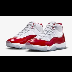 The next Christmas-time Air Jordan 11 is going to be the "Cherry" colorway that first surfaced in a low-top a few years ago. As you can see in the official images down below, the shoe has a white base to it all while a red patent leather ring is placed all the way around. It is an extremely clean offering and the red will definitely work well with the Christmas aesthetic that will be found all throughout the world.
