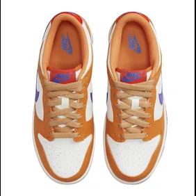 One such item is the Nike Dunk Low "Hot Curry" which can be seen down below. As you can tell, the sneaker has a white leather base to it, while brown leather overlays are placed on top. From there, the Nike swoosh is blue, with some red for good measure on the back heel and outsole. It's a vibrant colorway that will look great in the hallways at school.