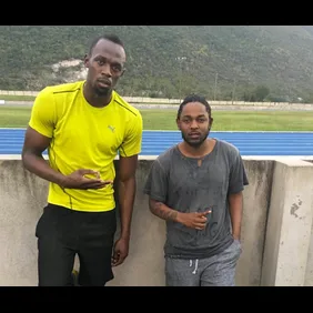 Apparently Kendrick got exclusive access to one of Bolt's training sessions. He put up a picture of him standing next to -- and dwarfing -- Kendrick outside of the track. "Big deal business when the @thegrammys star link u at your training," Bolt wrote on Instagram.