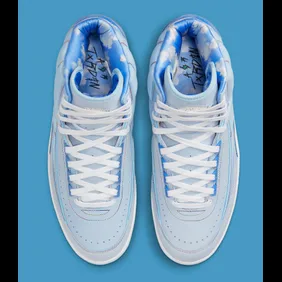 Today, fans got the official images for Balvin's Air Jordan 2, which can be found below. The shoe has a light blue upper to it, while the back heel and inner lining feature a darker shade of blue with clouds all around. From there, the back heel comes with Balvin's smiley face and lightning bolt logo, which was also found on the Air Jordan 1 he created. Overall, it's a unique Air Jordan 2 that is going to catch a few eyes.