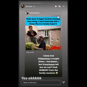 "We can't let nobody know, especially my grandma she might have a heart attack / Sh*t was drama I blocked 'til I bought it back," he continued. The lines were just a brief mention within the song's entirety, but it didn't go unnoticed. People complimented Fat Money on his obvious skills, but soon, commenters came in with questions about the bars and didn't hold back with memes. He was accused of using a shock factor, however, there were a few who didn't see anything wrong with what the rapper said and suggested there are people who regularly have sexual experiences with their kin.
