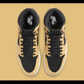 In these official images, you can see how the shoe has a mostly black base to it. From there, the overlays are this yellowish-tan color that really pops when surrounded by the black. This is one of the more unique colors to be put on an Air Jordan 1, although it makes for a unique shoe that works well in the fall.