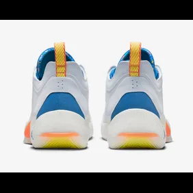 As you can see in the images down below, there is a "Football Grey" offering that has some nice contrast. The upper is covered in a light grey that almost verges on white. From there, you have a blue tongue with Luka's logo in yellow. Orange is then placed on the midsole as the outsole has a nice dash of yellow. These elements come together nicely, and we're sure Luka's new shoe will continue to impress.