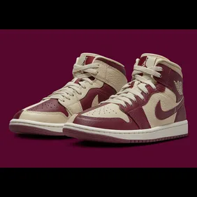 In the official images down below, we can see a sneaker that contains a gorgeous burgundy and a creamy beige hue. These colors are intertwined and split down the middle at various points, which creates a fun sneaker that is definitely going to grab people's attention. This would be a great color for the Fall season, and we're sure other sneaker consumers will agree.