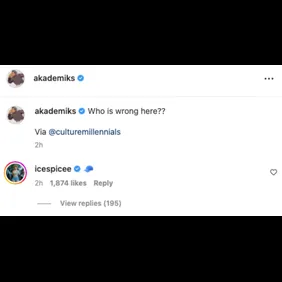 DJ Akademiks reposted the message and it didn't take long for his followers to jump into the comment section with complaints about Ice Spice only having one song, but she emerged with a "cap" emoji to suggest that the person was lying.