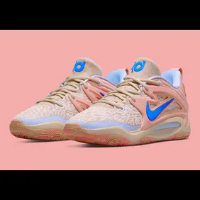 The latest colorway to be revealed is this beige and pink number, which can be found below. The shoe mostly takes on a beige upper with some cool patterns woven in, all while the side guards are pink. From there, flashes of blue are added for good measure as the KD logo on the tongue and the Nike swoosh are given the aforementioned hue.