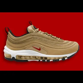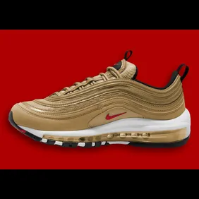 An example of this is the Nike Air Max 97 "Gold Bullet." This shoe is going to return very soon, and as you can see in the images below, it is definitely a shoe worth revisiting. From the upper to the red Nike swoosh highlights, this is a shoe that should be in everyone's collection. After all, who doesn't love gold shoes? Sure, the "Silver Bullet" is more iconic, but these are certainly up there.