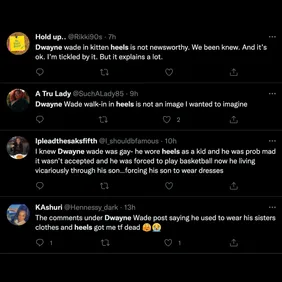 "A three years old, like I said, when me and my wife looked at each other, right, and the reason we looked at each other is because of this—you know, as kids, I used to put on heels," said Wade. "I used to do all those things. I tried to put on whatever my sisters wear, whatever my sisters did, I tried to do those things."
