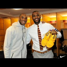 This time, following the Lakers vs Cavaliers match that ended in a loss for the Lakers, Kobe stopped by the Cav's dressing room where he bestowed upon Lebron a pair of sneakers-- although it was a bit more personal than his gift to Paul George, as these were quite literally the yellow and purple Kobe 11s off his feet.