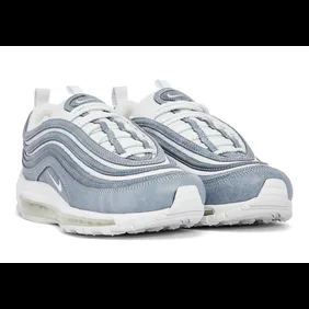 In the official images down below, you can see how this Nike Air Max 97 contains one light color scheme and one darker one. The former of the two has a light blue upper with some white all the way around. As for the second color scheme, we are met with this charcoal grey marble look that almost looks green depending on the lighting. Both colorways are unique and the CDG flare is certainly present.