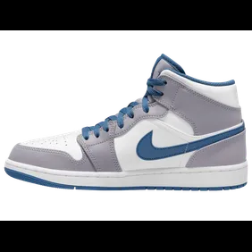 Now, the Air Jordan 1 Mid will be getting the "True Blue" treatment, as you can see down below. This sneaker has iconic Jumpman colors as we have a white base with some clean grey overlays. From there, the Nike swoosh, laces, and outsole are all blue. These elements come together perfectly to create a colorway that will appease both casual and hardcore fans.