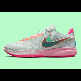 One of those offerings was reported on just last week, although it was called "Barely Green" at the time. Today, Jordan Brand officially unveiled the LeBron 20, and the colorway in question is now being called "Time Machine." As you can see below, the shoe has a light green upper with some nice pink on the midsole. There are some unique colors on the two swooshes, and with the orange near the tongue, it is clear that this colorway is going for a vibrant look.