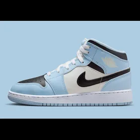 Among these Air Jordan 1 Mids for kids is the "Ice Blue" colorway found below. As you can see in the official images, the shoe has white side panels while black appears on the toe box, back heel, and Nike swoosh. The ice blue portion is found on the overlays, and it creates a perfect contrast that offers up some Winter-type vibes.