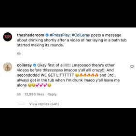 A video of Leray laying fully clothed in a bathtub while her friend tried waking her up quickly circulated online, and it clearly showed that the rapper had one too many drinks. People made this clip a point of discussion as they weighed in with their takes on safety while expressing concern for Coi Leray's well-being. She issued a response.