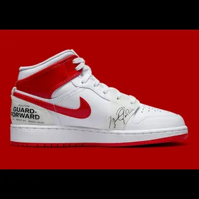 As you can see in the images down below, we have the Air Jordan 1 Mid "Rookie Season." This is a shoe that honors MJ's very first year in the NBA. The majority of the shoe is white while the Nike swoosh and cuff are made with red patent leather. From there, MJ's signature is on the front near the laces, and on the back heel, we have some information about MJ such as his height, weight, position, and draft year. It is a very cool shoe and it could certainly be worth owning if you love MJ.