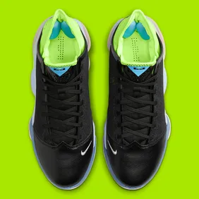 In the official images, you can see that the shoe has a mostly black upper. The side are made with mesh but the toe box has some leather which definitely changes the texture. From there, we have some blue at the front of the midsole. To end things off, ghost green is found on the back heel, and the Nike swoosh. This adds a nice pop of color that will stand out on the basketball court.