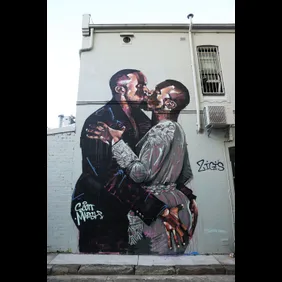 A week or so back, news broke of a mural painted in Australia that recreated a famous photo of Kanye West and Kim Kardashian locking lips, only this particular interpretation of the moment plastered Kanye's head on both figures. According to reports, Kanye's team was attempting to have the mural painted over, at which point, artist Scott Marsh decided to take advantage of the situation and put a $100,000 price tag on buffing the piece, which would also include a print of the buffed painting for the purchaser.