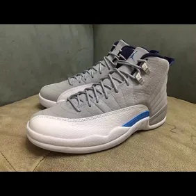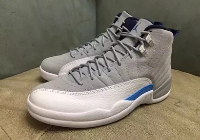 While its officially called the Air Jordan 12 “Wolf Grey/University Blue,” it seems pretty clear where the inspiration came from. The upper uses a mix of leathers on the upper. The standard pebbled leather appears on the mudguard in white while the rest of the tonal upper uses a grey tumbled leather. Subtle university blue accents break up and otherwise fairly tame color scheme.