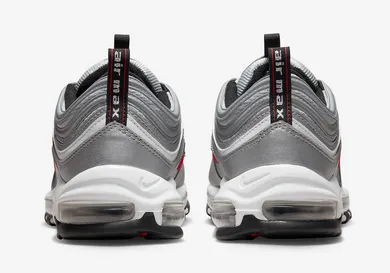 One of those colorways is the "Silver Bullet" offering, which can be seen in the images provided. This is a colorway that is known for being an OG offering from 25 years ago. It is the shoe that kicked off the Air Max 97 resurgence, and after a round of rereleases in 2017, these are back in 2022.