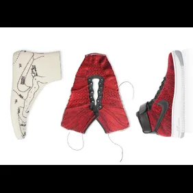 The team had to get creative on the very old school sneaker silhouette, since the original Air Force 1 design relies heavily on multi-panel construction. Despite difficulties, designers were able to create a shoe that is half the weight of the original AF1 high while simultaneously putting together the first ever Flyknit sneaker featuring a leather swoosh.