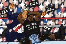A proper follow-up to tonight's Wrestlemania extravaganza, Smoke DZA and producer 183rd have shared the fifth installment of their wrestling-themed Ringside series. The cover of the new Ringside 5 EP shows DZA -- dressed as "Stone Cold" Steve Austin -- unleashing the Stunner on Agent Orange, aka President Trump.