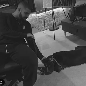 Seems like Drake's been logging long hours in the studio the last month finishing up Views... all he has for companionship is Noah Shebib and this pup.