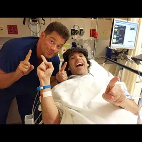 The interview gawd poses with his doc after undergoing successful heart surgery this week. Wishing Nardwuar a speedy recovery.