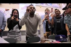 These two events are directly linked, as it was Brian Mooney's use of the album in class that inspired Kendrick to pay the school a visit. The rapper started things off by sitting in on some poetry lessons from students, providing feedback on each. After that, he performed TPAB highlight, "Alright" for the school.