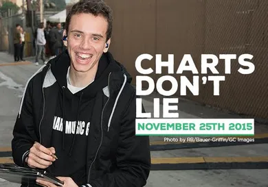 Adele is still ruling the Hot 100 (and we're expecting a takeover next week when her record-breaking sales numbers come in), but behind her we've got an influx of Canadians, starting with Bieber's "Sorry" at Number 2, Drake's "Hotline Bling," down 2 to 3, two more Bieber tracks, and then The Weeknd's "The Hills" at 6 (down from 4).