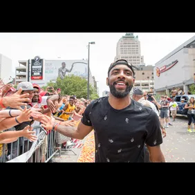These are the very kicks that Kyrie Irving wore during the Cleveland Cavaliers' championship parade, sporting a white and black build with a special edition, vibrant floral print on the midfoot strap. Volt accents on the branding and a translucent, icy blue outsole cap off the celebratory sneaker.