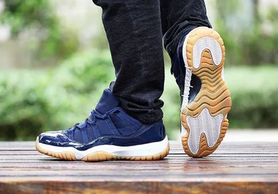 Today, we learn that this new look "Navy/Gum" joint will also be releasing. In traditional Air Jordan 11 fashion, the "Navy/Gum" is built on a ballistic mesh upper with that iconic, shiny patent leather on top.