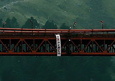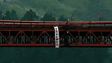 The banner was taken down on Sunday, and the California Highway Patrol is currently investigating the stunt. It seems like Jesushands is more concerned with carrying out his feats of protest than he is with the consequences. Assuming he doesn't get in too much trouble for this one, what landmark will his godly hands touch next?