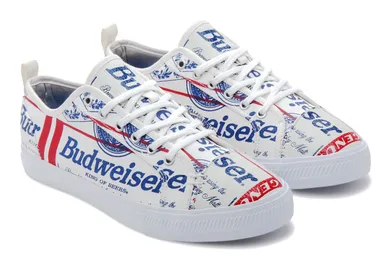 Those three brands teamed up for this special edition pair of Greats Wilson shoes that feature an all over Budweiser print. But why?