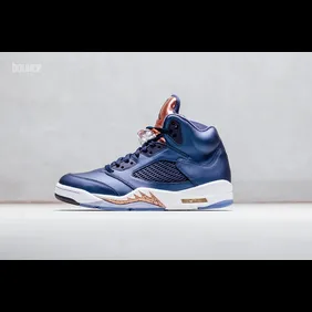 The classic Air Jordan 5 silhouette is actually outfitted in obsidian blue but bronze accents on the tongue and midsole give the sneaker its 3rd place moniker.