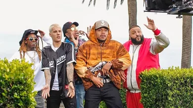 The last time DJ Khaled featured four or more big names on a track, it was last summer with "Do You Mind," the star-studded Major Key cut that had Nicki Minaj, Chris Brown, August Alsina, Jeremih, Future, and Rick Ross appearing side-by-side. As you may remember, that track spent over half a year in our top ten. This past week, Khaled shared the second track from his upcoming album, Grateful, and it's possibly even more jam-packed with big name guests than its Major Key counterpart. We'll have to see if it can touch its predecessor's performance.