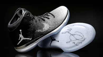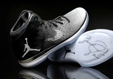 The "Fine Print" Air Jordan 31 is a tribute to the original Nike contract that Michael Jordan signed as a rookie, which is still on display in the Michael Jordan building on Nike's campus. Like the contract itself, the sneaker features nothing but hits of white and black; MJ's signature on the sole is a cool little detail as well.