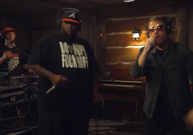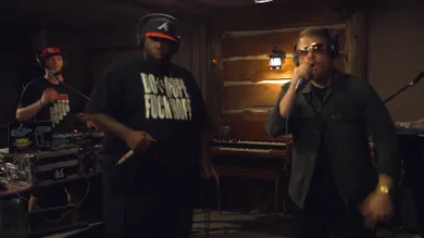 El-P and Killer Mike, collectively known as Run The Jewels, perform live in a log cabin. The two recently recorded new music for a follow-up to their self-titled debut at the famous Stankonia recording studio.