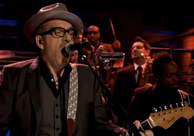 The Roots perform 'Walk Us Uptown' with Elvis Costello on Late Night With Jimmy Fallon. The track is included on their collaborative album "Wise Up Ghost".