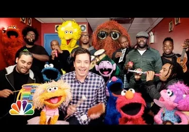 Jimmy Fallon and The Roots perform a rendition of the Sesame Street theme song with the cast of the show, Black Thought verse included. Enjoy.