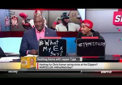 Tyga appeared on ESPN’s SportsNation show where he talked about the Lakers vs. Clippers rivalry, Kevin Durant saying that he’s not obsessed with winning a title anymore, Golden Tate apologizing for his taunting penalty, and more.