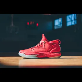 The "Dame Time" D Lillard 2 features a tonal shot clock mosaic on a bright red upper and utilizes design cues from disappearing minutes in crunch time to reveal .9 seconds. Matching the ice in his veins, the latest D Lillard 2 also features icey accents along the outsole and heel branding while gold hits on the lace tips and eyelets cap off the buzzer beating tribute.