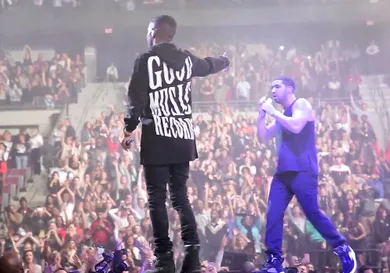 During his stop at The Palace of Auburn Hills in Michigan, Drake brought out D-town's own Big Sean to help him perform their hit record "All Me". After the performance, Sean announced to the crowd that Drake will be a huge part of his next album. Check it out above.
