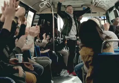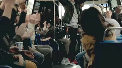 For the newest Grammy ad, Macklemore & Ryan Lewis board a bus full of commuters in NYC and surprise them with a performance of their hit record "Can’t Hold Us". Watch what happens next above!