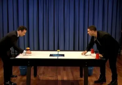 In preparation of his SNL appearance on Saturday, Drake stopped by Late Night With Jimmy Fallon tonight and played a game of “beer hockey” with the host. The loser had to chug a "real beer". Who do you think wins?