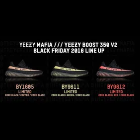 According to the reliable @YeezyMafia, Adidas will be releasing three new colorways of the Yeezy Boost 350 V2 on Black Friday, all of which are built on black primeknit uppers.
