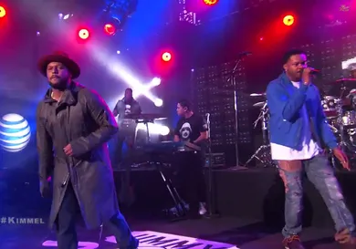The performance began a bit humorously when Kimmel introduced the song's featured artist as "BJ and the Chicago Kid," perhaps getting his name confused with the film "Butch Cassidy and the Sundance Kid."