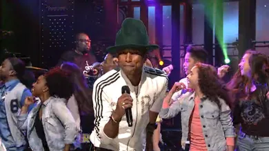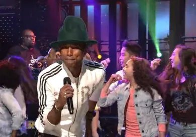 But if anyone's worked hard enough for it, it's Pharrell. Watch him pull out all of the stops for his upteenth zillionth lavish performance of the overwhelmingly popular single, "Happy," off his record, GIRL.