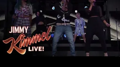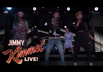 Pharrell was not only the musical guest on Jimmy Kimmel last night, but he was also interviewed by Kimmel. For his musical performance, the singer performed a track off his chart-topping LP G I R L, "Come Get It Bae."