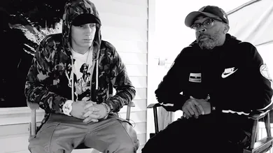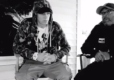 In the short clip, Em and Spike Lee appear seated, discussing the upcoming video. The teaser is shot in black and white, which might be a sign of things to come for the "Headlights" official video. Unlike Em's previous teasers for "The Monster" and "Rap God" videos, we don't get any shots that look like they're from the actual video.